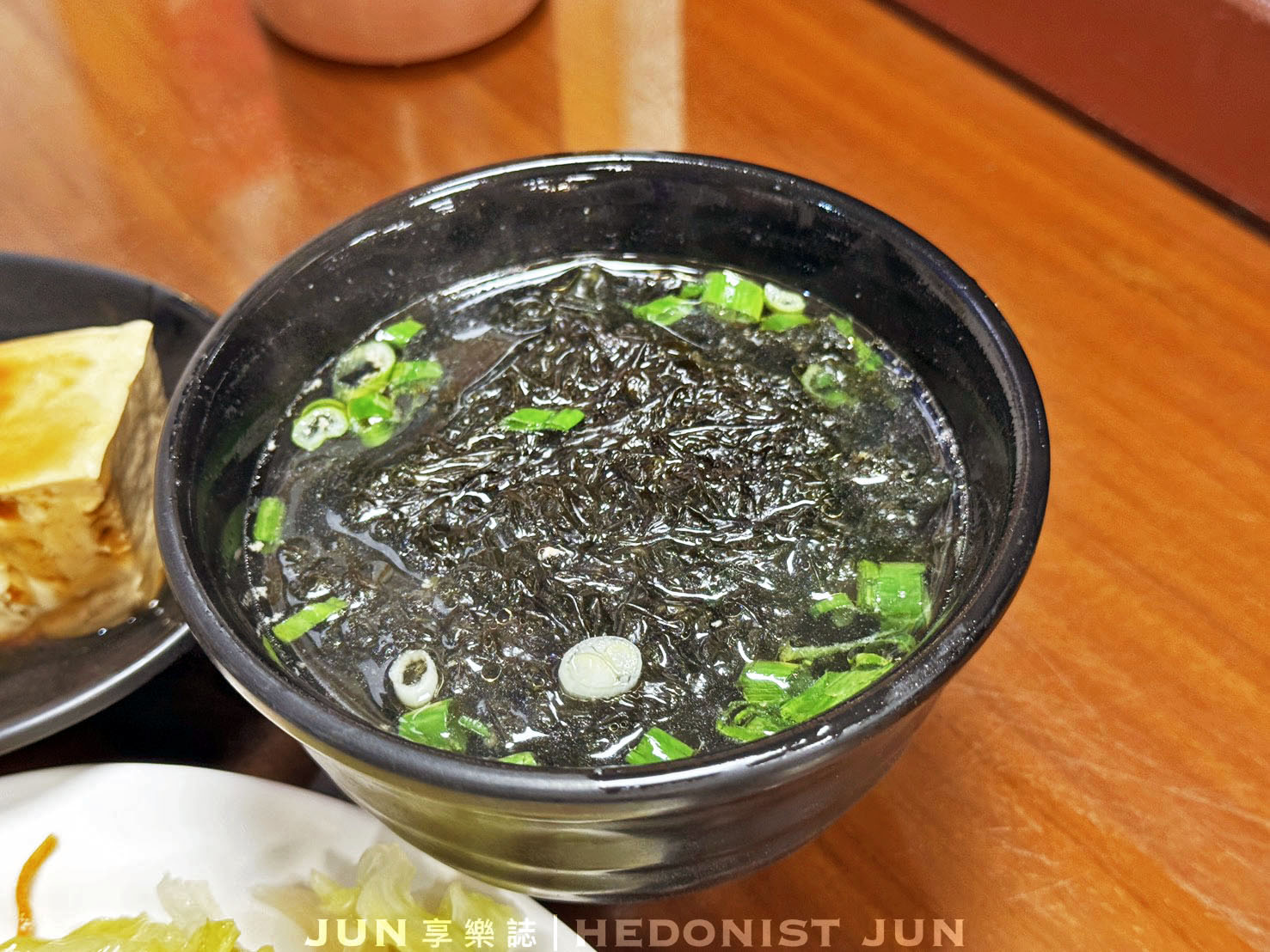 滿滿紫菜的紫菜湯,湯本身幾乎沒什麼味道,只有紫菜的紫菜味。