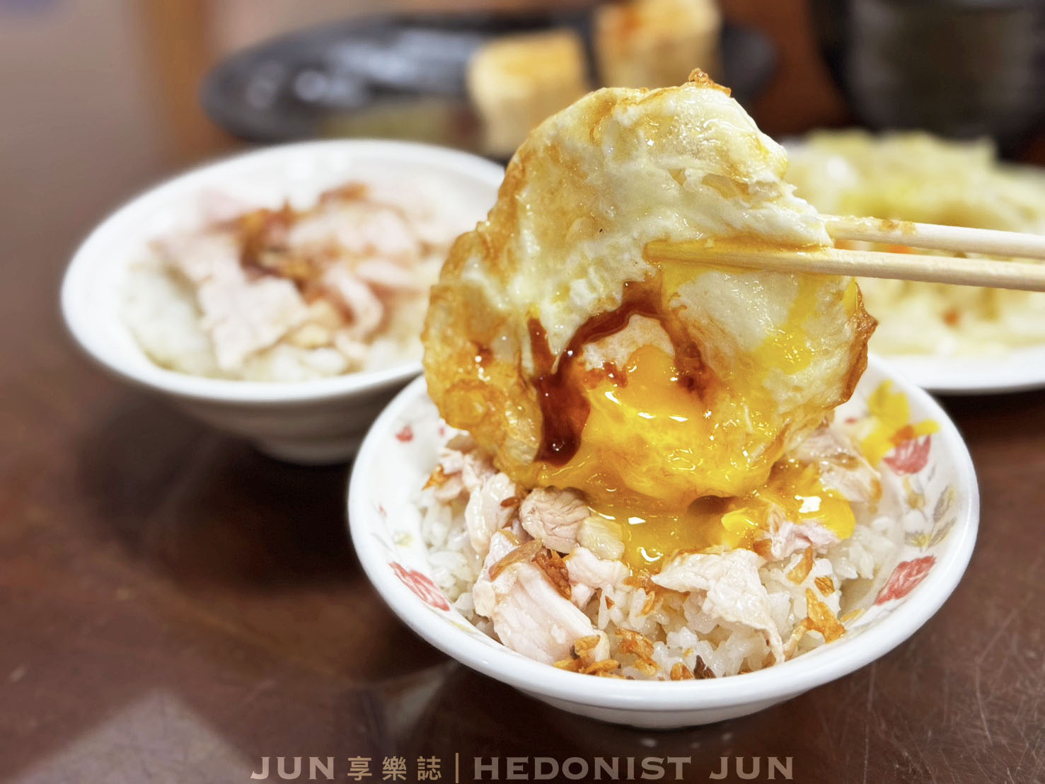 半熟蛋的功用,就是為「阿宏師火雞肉飯(光華總店)」雞肉飯鍍上一層金!蛋液汨汨流淌著,看起來好吃極了!