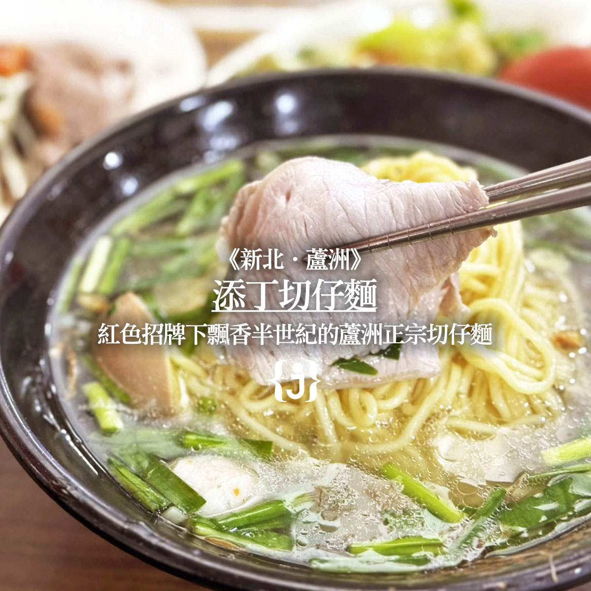 「切仔麵」發源地蘆洲,有不少歷史悠久的老麵店,其中以湧蓮寺廟口左右遙遙相望的兩大切仔麵最有名氣,分別是「周烏豬切仔麵」以及另一頭紅色招牌的「添丁切仔麵」,這是間具有歷史傳承的老字號麵店,師承切仔麵祖師楊萬寶,雖然招牌上寫30年老店,但至少賣超過半世紀。