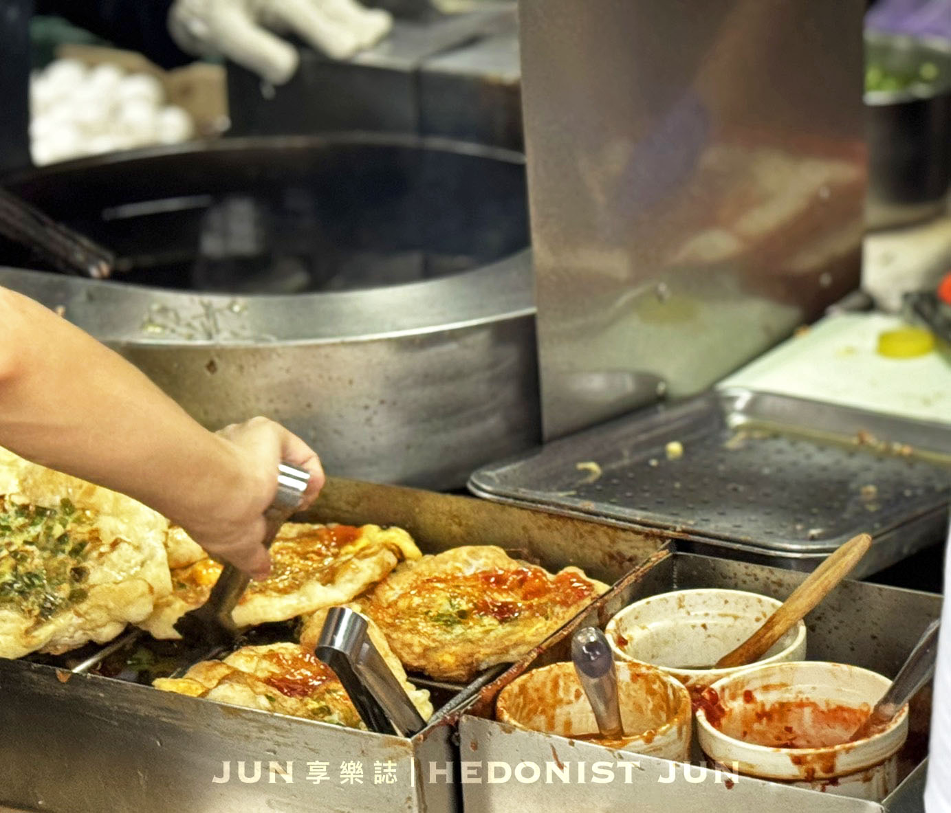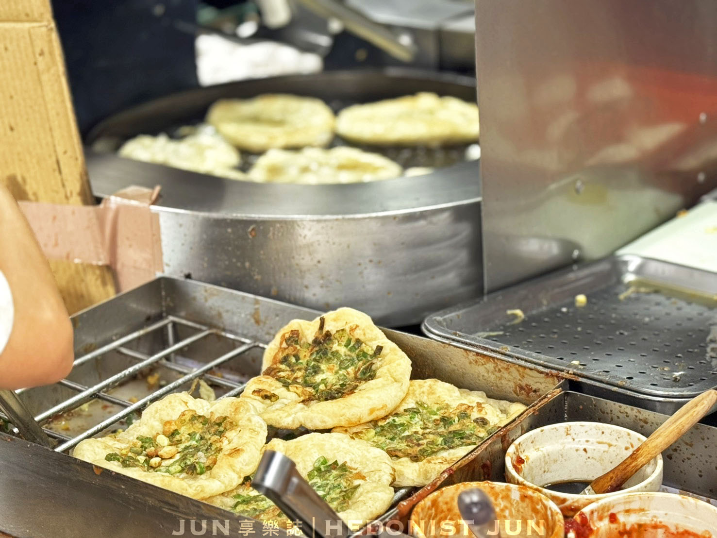 「柯氏蔥油餅」特調的甜辣醬與蔥油餅簡直天衣無縫,鹹香交融,微甜微辣正好襯出蔥香,越吃越上癮。