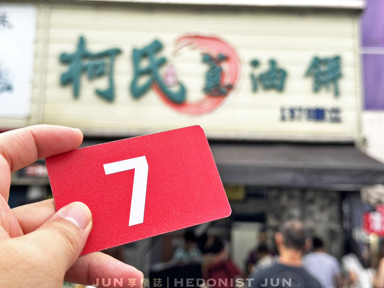 「柯氏蔥油餅」排隊結完帳後領取號碼牌,叫號取餐,我大約等了10來分才領到餐。
