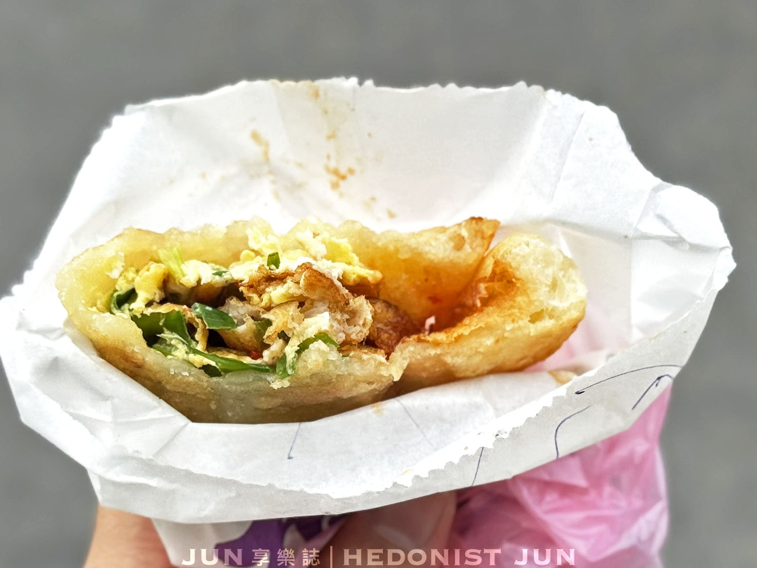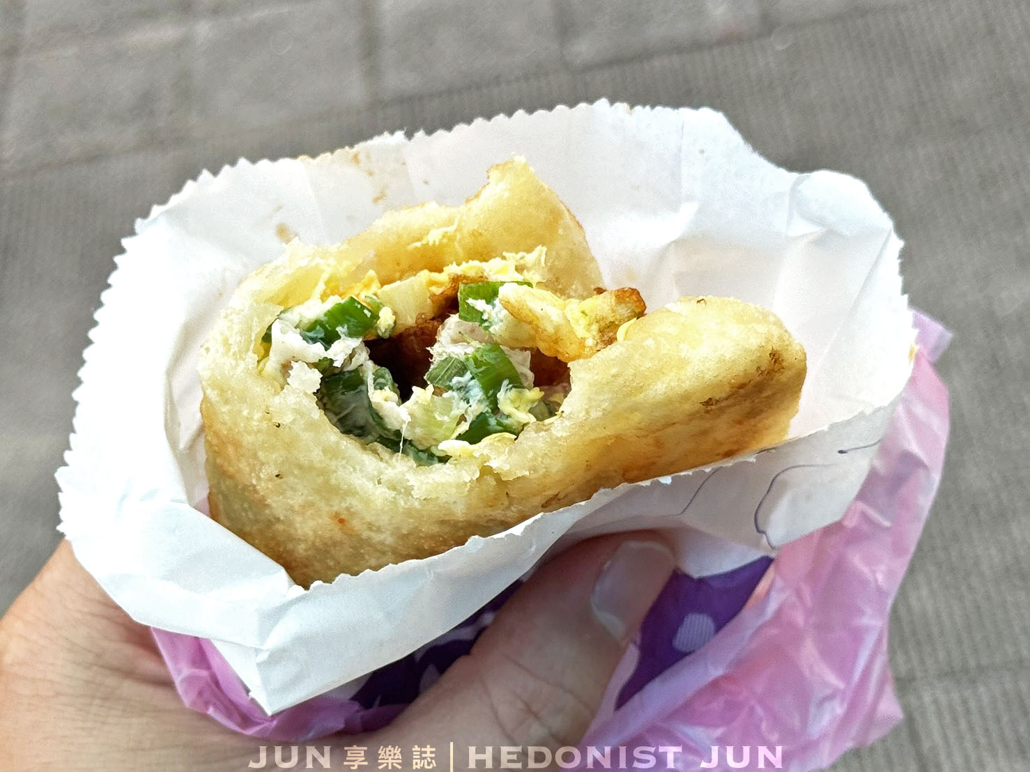 咬下去那刻,餅皮層層分明,還藏著一點空氣感,外酥、內Q,咀嚼間滿是蔥香、蛋香與麵香的交織,每一口都讓人停不下來。