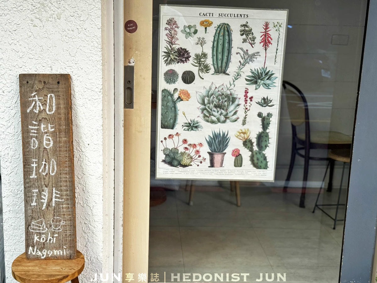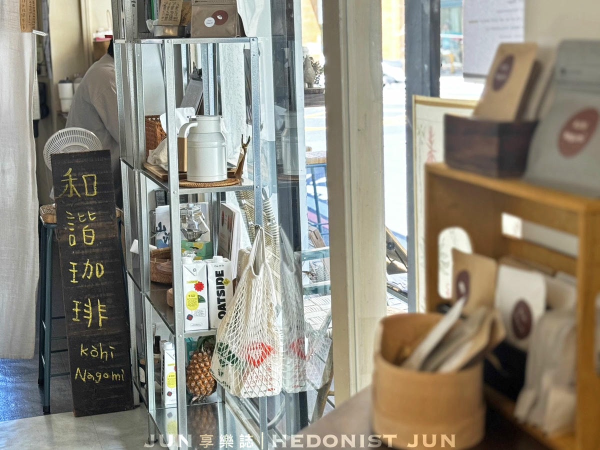 位子很不錯,「和諧珈琲 Kōhī Nagomi」就在和睦路和康樂路交叉口的三角窗,外觀清新文青質感,有專門提供外帶的小窗。