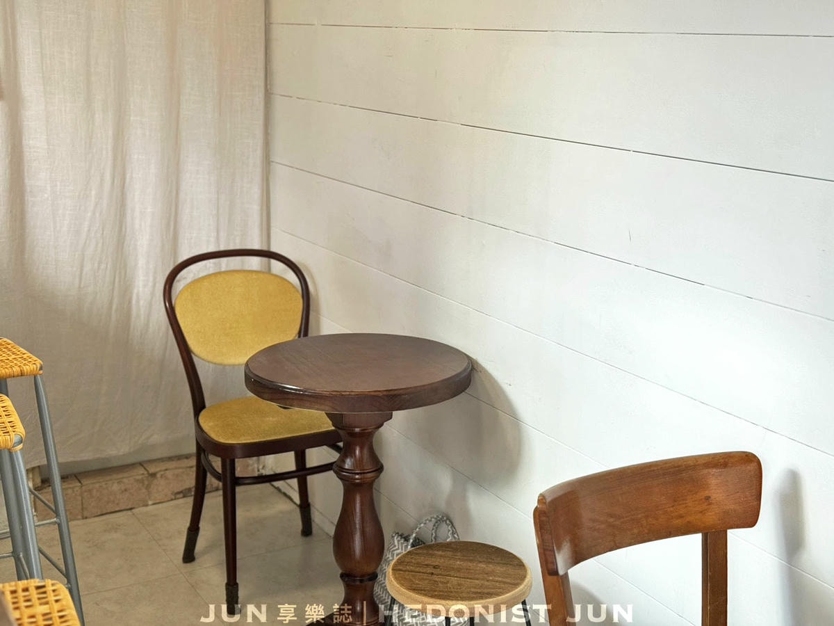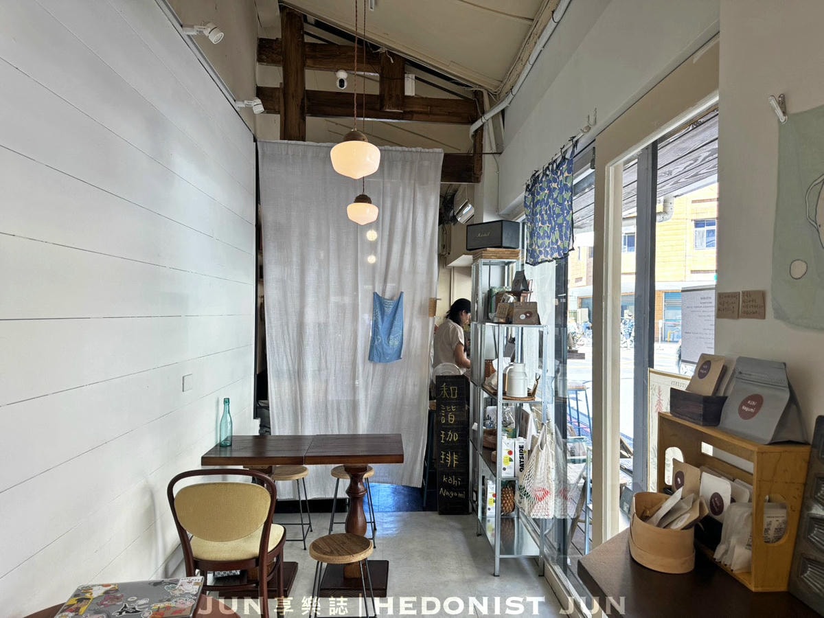 「和諧珈琲 Kōhī Nagomi」的室內空間簡單清新,你也可以說有些侷促,不提供廁所,也沒有太多位子,你可以說是「一間外帶咖啡附屬的內用區」。