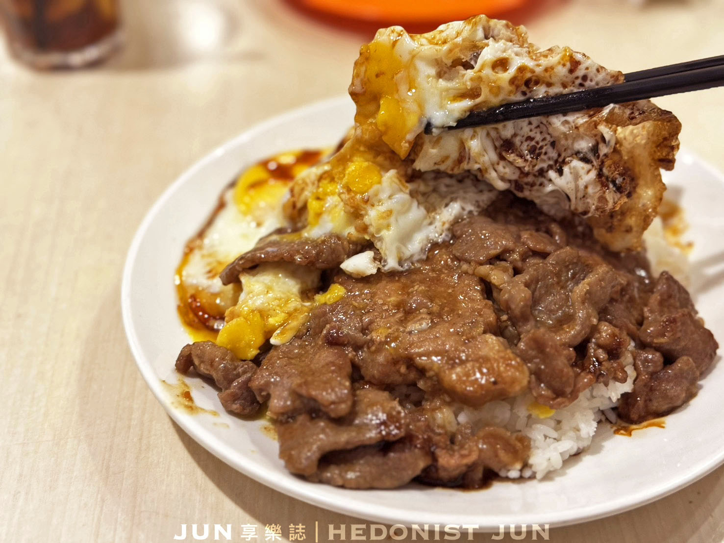 「茗香園冰室」的招牌餐點,也是當初吸引我走上門的「邪惡三眼仔沙茶牛肉飯」,過了快10年還是如此經典,三顆大蛋黃淋上豉汁好讚,當然,膽固醇也爆錶了。