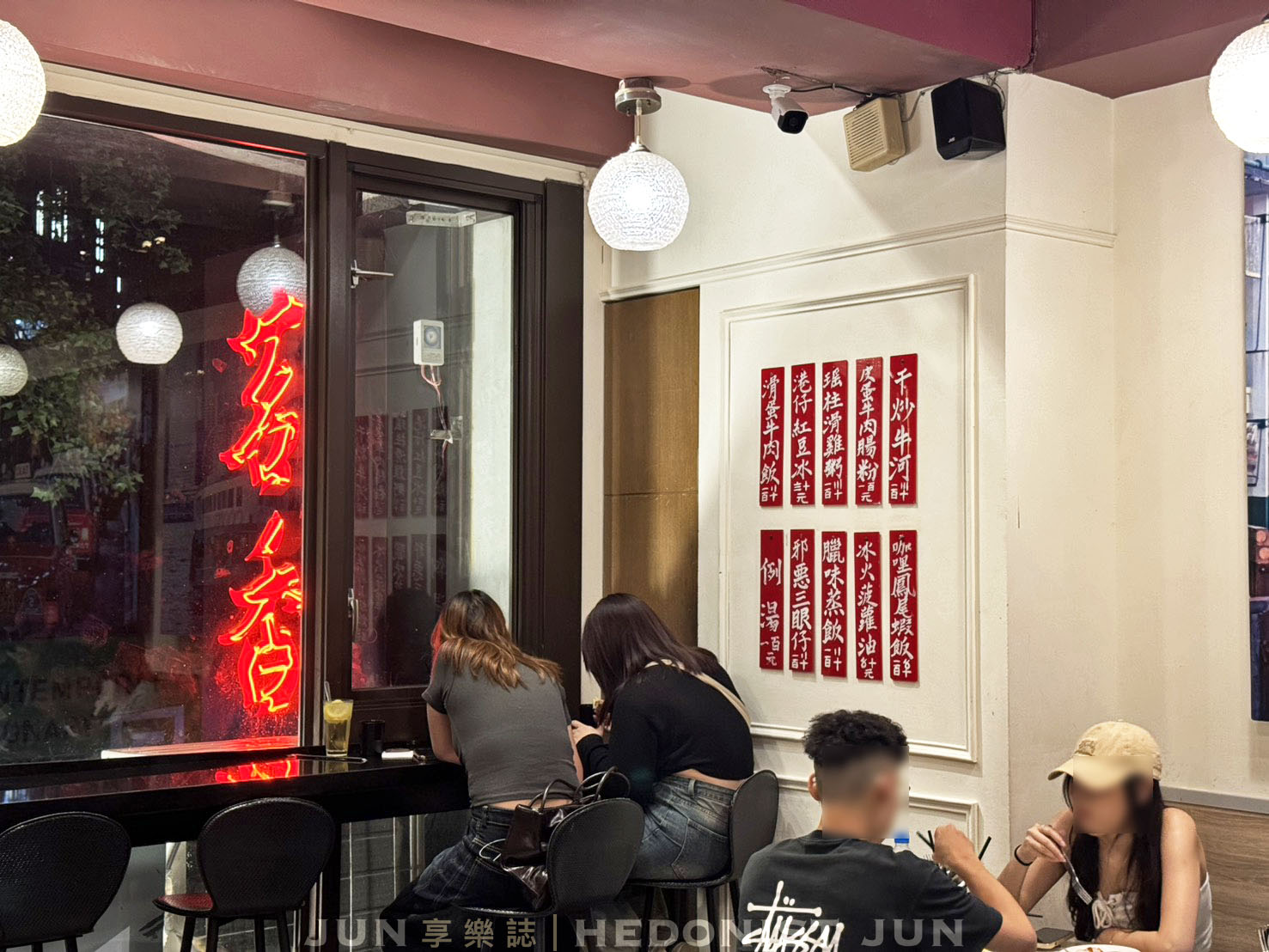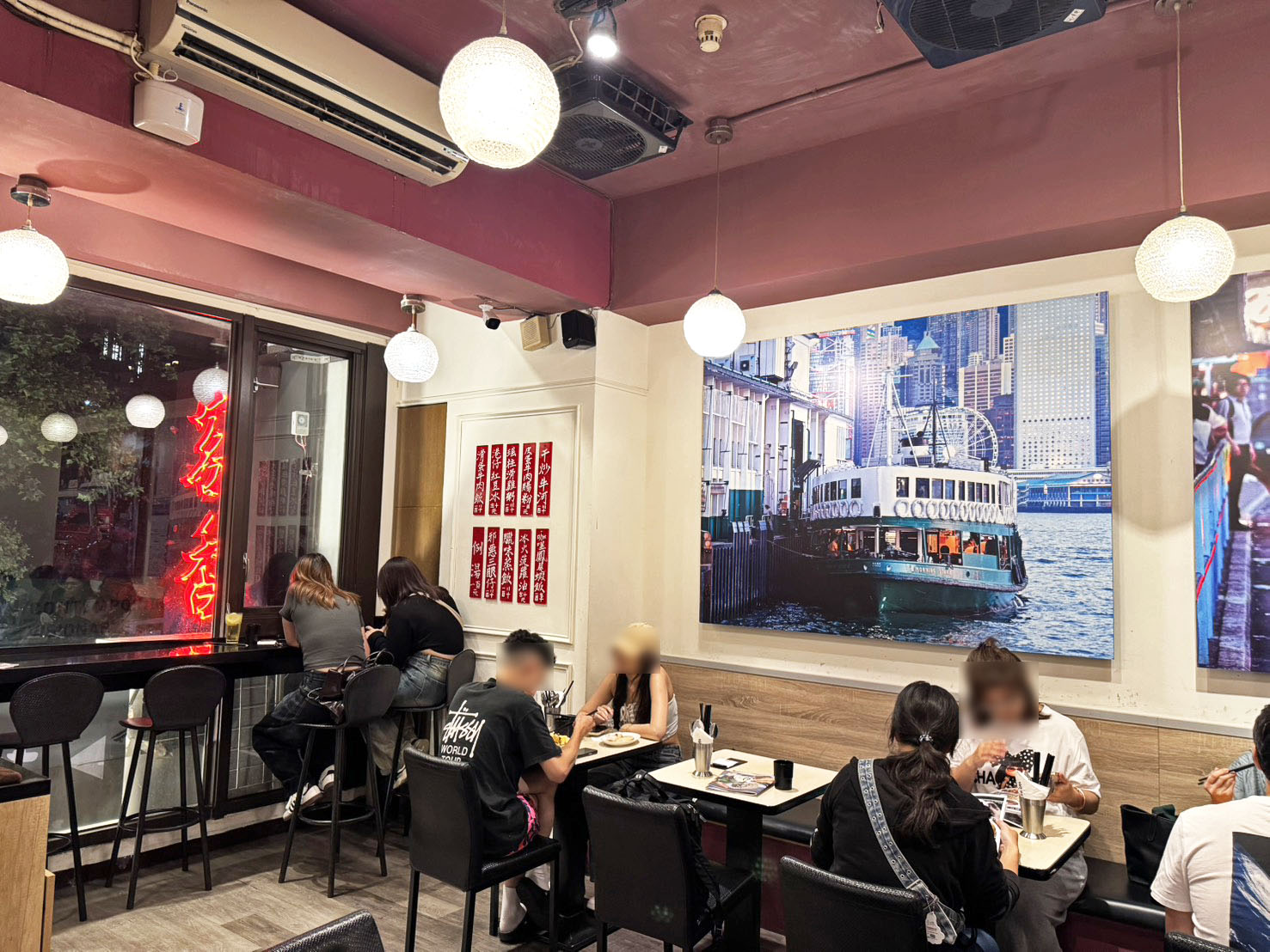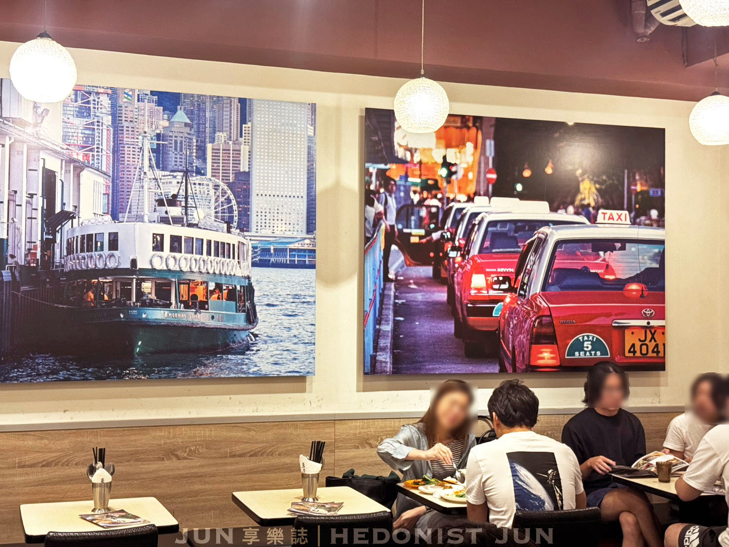 牆上掛著幾幅充滿香港意象的攝影作品,沒有像多數港式餐廳那樣貼滿霓虹招牌或明星照片,但從那份克制與選擇中,仍能看出「茗香園冰室」對香港文化的自信與驕傲。