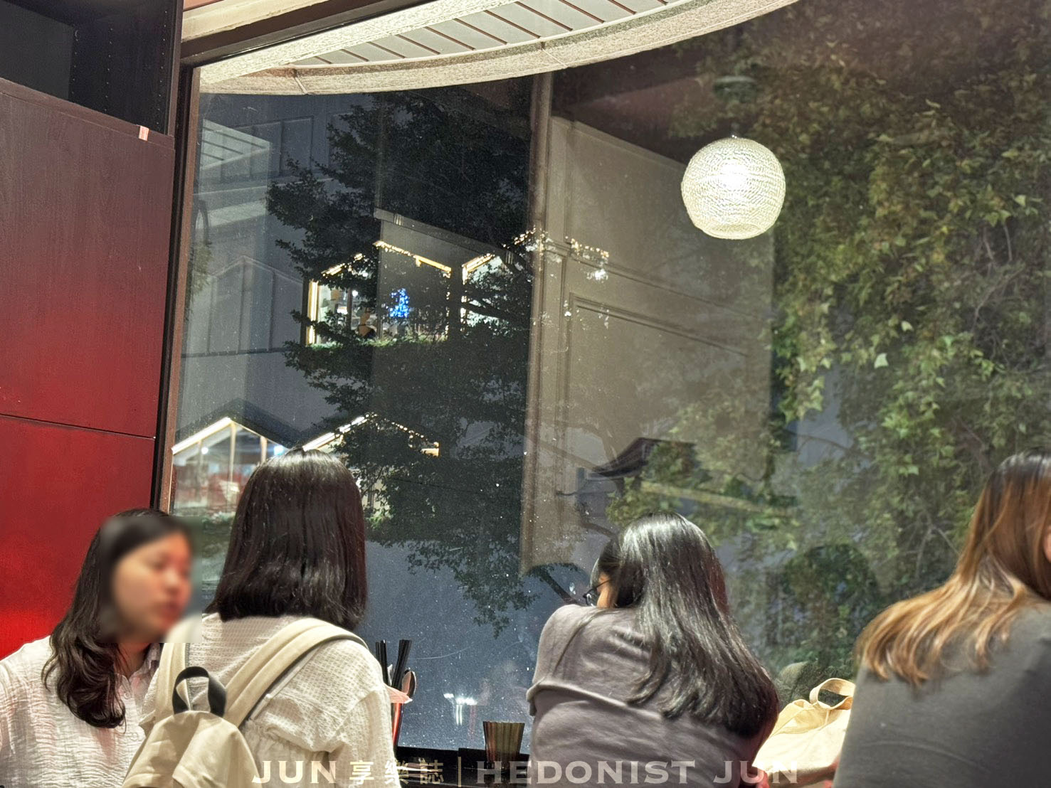 「茗香園冰室」窗邊吧台座與南西誠品隔著一片心中山樹海遙遙相望,彷彿置身電影場景般,帶著微妙而詩意的氛圍。