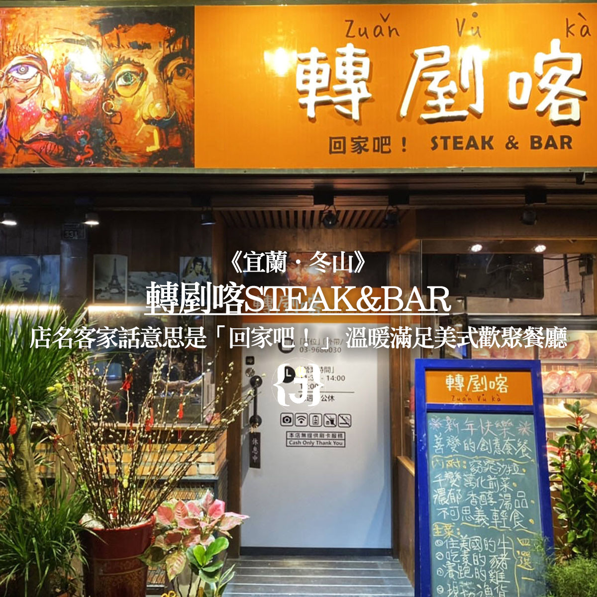 宜蘭客家人也不少,如羅東北成、礁溪林美等就是宜蘭客家人聚集的區域,稱作「客人城」,其他一些小聚落後來都被閩人同化了,所以當我來到開在冬山義成的餐廳「轉剭(ㄨ)喀 (ㄎㄚˋ)」時還沒聯想到和客家人有關係,原來是客家語『回家吧』的意思,而且雖然店名是客語,但賣的卻是美式牛排、沙拉等西式餐點,很有意思。