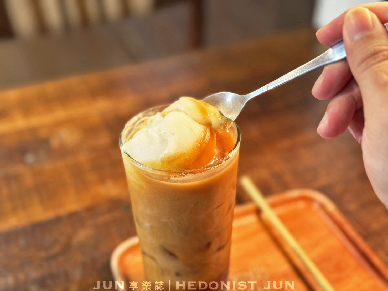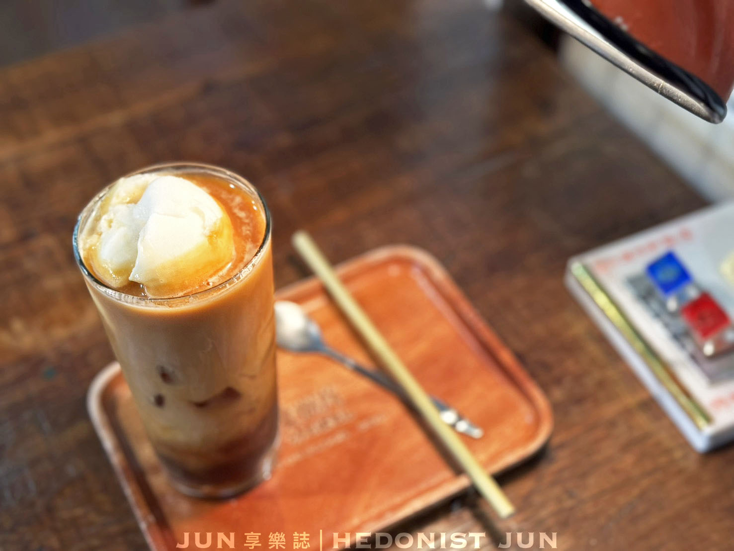 外頭夏日炎炎,我點了杯漂浮冰咖啡消消暑氣,深邃冰咖啡打底,冰塊清脆透亮,苦香中帶著沁涼,上頭漂浮著一球香柚清檸冰淇淋,淡黃色澤明亮如晨曦。